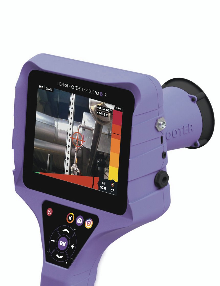 Filme, visualize e fotografe o local preciso onde o ar comprimido, o vapor, o gás pressurizado estão vazando usando o LEAKSHOOTER V2+IR.